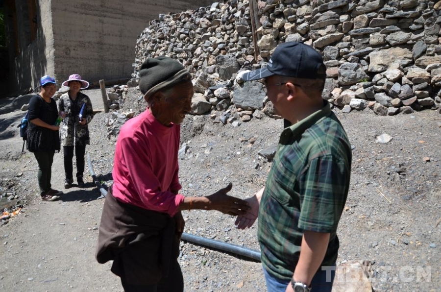 圖為在昌都市葉巴村駐村期間,吉米平階(左一)正在調(diào)研