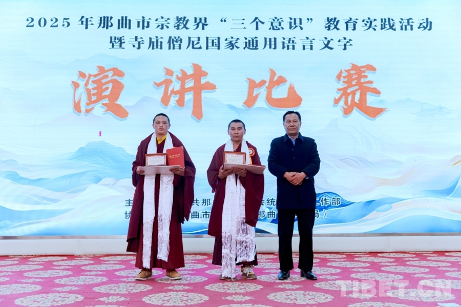 中國西藏網訊 11月13日,2025年那曲市宗教界“三個意識”教育實踐暨寺廟僧尼國家通用語言文字演講比賽舉行。來自那曲市10縣(區)的22名寺廟僧尼站在演講臺上,用流利的普通話暢談學習心得、分享家鄉發展變化。