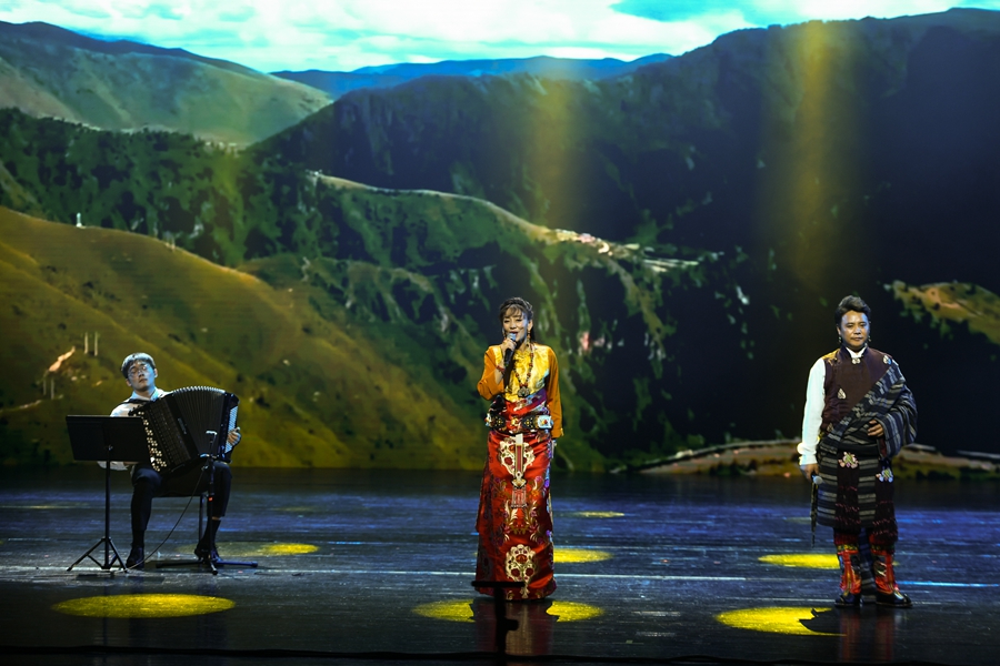 7月16日,手牽手·心連心《從黃河到長江》主題音樂會青海西寧站演出在青海大劇院精彩亮相。新華網 潘彬彬 攝