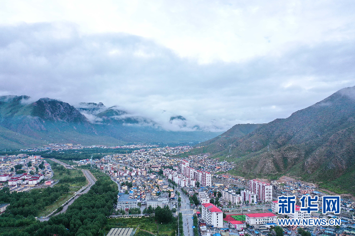 這是2021年8月7日拍攝的玉樹市城區(無人機照片) 新華社記者 吳剛 攝