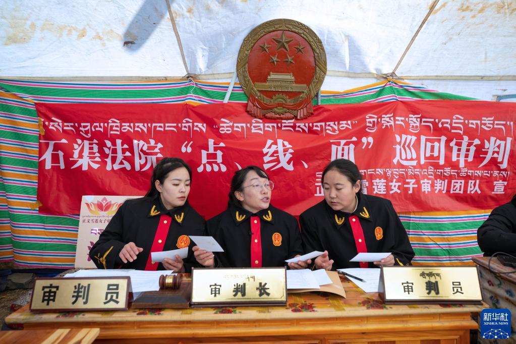 石渠縣地廣人稀,25萬平方公里的土地上散居著10萬人,一旦有了矛盾糾紛去法院并不方便。“正義雪蓮”女子審判團隊為了減輕當事人的訴訟負擔和壓力,主動扎進牧場、深山,送法到群眾身邊,通過“馬背法庭”“帳篷法庭”“車載法庭”等巡回審判的形式,為群眾解決急難愁盼的問題。據統(tǒng)計,石渠縣人民法院如今每年有近一半的案件通過巡回審判辦理。