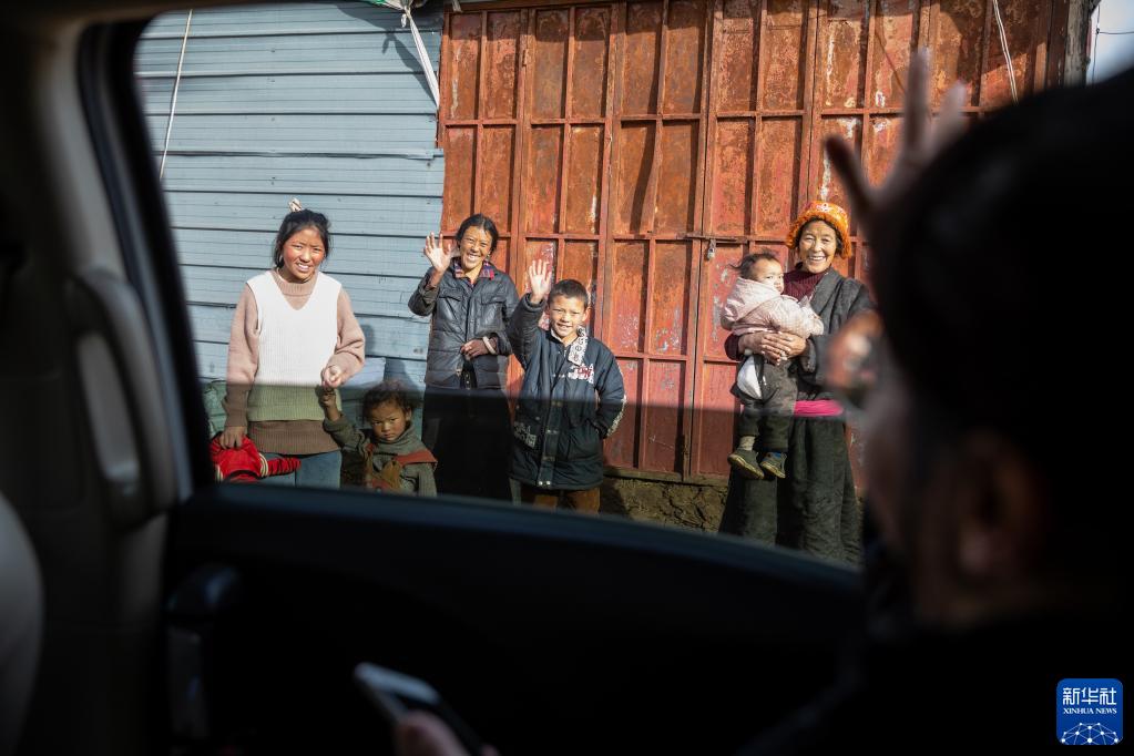 “正義雪蓮”女子審判團隊成員到當事人家中回訪,群眾向他們揮手致意(1月11日攝)。新華社記者 沈伯韓 攝