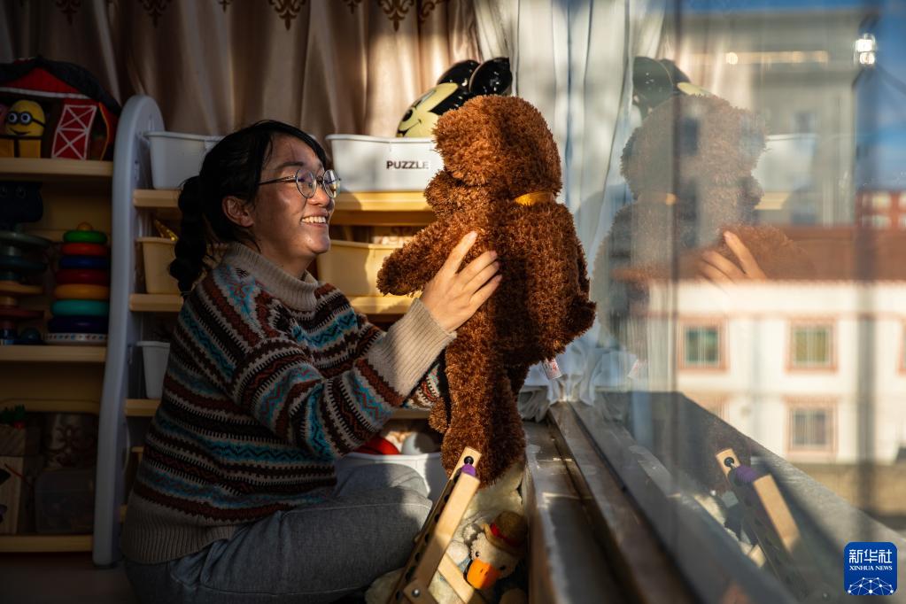 在石渠縣家中,法官澤仁曲西在整理兒子的玩具(1月11日攝)。目前,澤仁曲西的兒子跟著外婆在成都,丈夫在300多公里外的德格縣工作,一家人分居三地,相聚時間寥寥。新華社記者 沈伯韓 攝