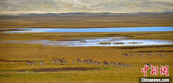 “其中黃河源頭扎陵湖、鄂陵湖湖泊面積與2015年比較分別增大74.6平方公里和117.4平方公里,黃河源‘千湖奇觀’再現。同時,黃河源頭水源涵養能力不斷提升,湖泊數量由原來的4077個增加到5849個,濕地面積增加104平方公里。草地綜合植被蓋度達56.3%。生物多樣性不斷豐富,野生動物種群由原來的17目29科79種增加到21目46科106種,尤其是藏野驢、藏原羚等動物數量明顯增加。”甘學斌說。