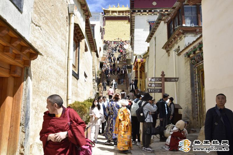 “五一”小長假已過,但香格里拉旅游依然保持熱度,圖為松贊林景區人頭攢動。