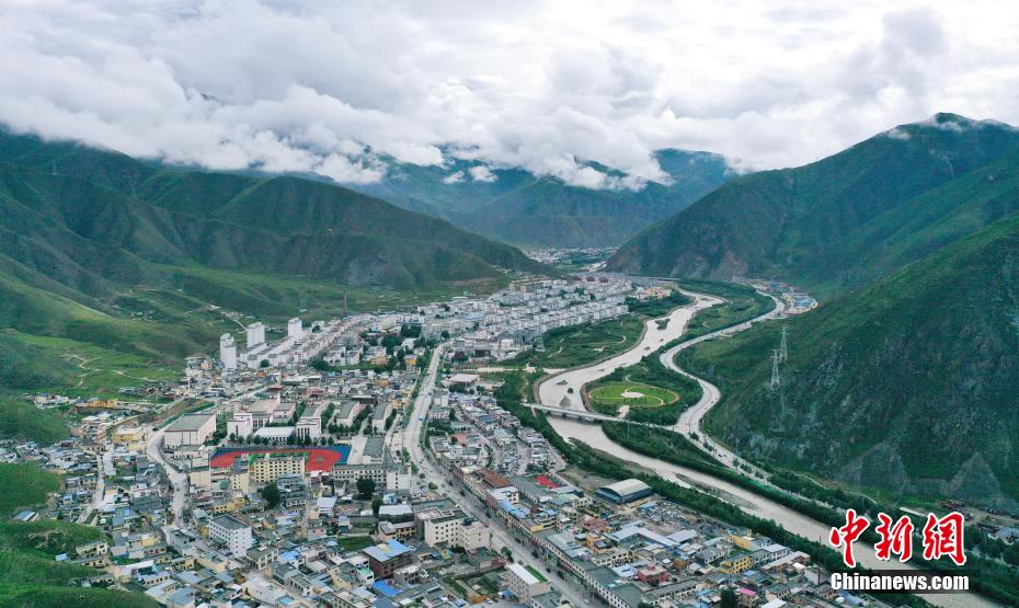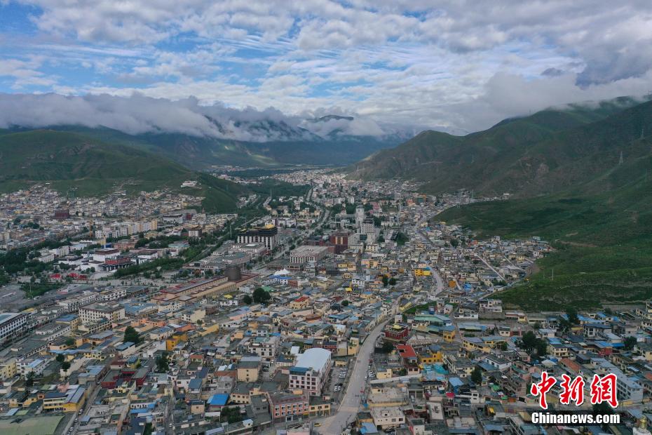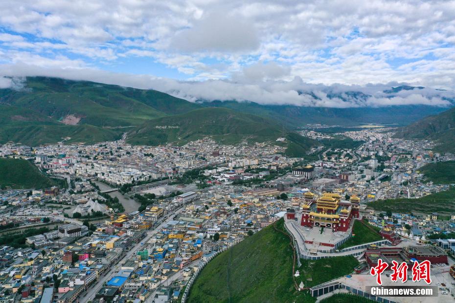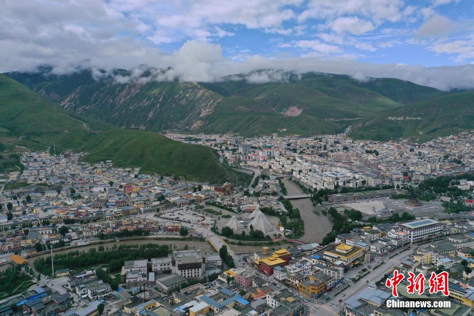 8月4日,航拍青海省玉樹藏族自治州玉樹市城區。馬銘言 攝
