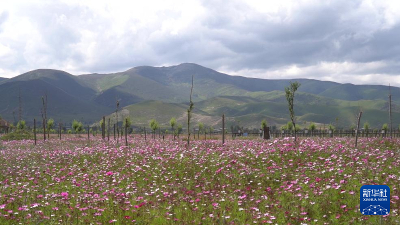 難以置信的是,這里曾是一片沙化嚴重的草場,當地村民靠傳統放牧已難以為繼。2016年以來,當地政府利用實施生態治理工程的契機,整合涉農涉旅資金,大面積種植格桑花,打造出近1600畝的色拉花海。