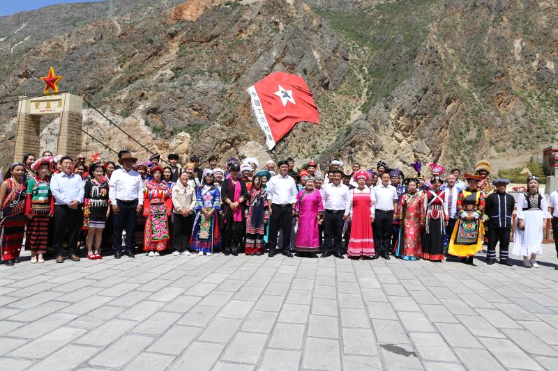 活動中,全體人員合唱《我和我的祖國》,在德欽縣第二小學的少先隊解說員的指引解說下,56位民族嘉賓還參觀了賀龍橋紅軍長征紀念館,在紅軍長征路過賀龍橋的故事中,大家走進了曾經(jīng)硝煙彌漫的艱苦歲月,更深刻地感受了戰(zhàn)爭年代紅軍與各民族肝膽相照、相依相存的深情厚誼。