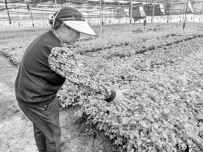 咱威村村民張春琴看著地里的馬鈴薯原原種種苗長勢旺盛,臉上寫滿了喜悅?!拔易约杭乙卜N了1畝多土豆,用基地的種子種出來的馬鈴薯個頭大、產量高,賣得起價。我現在一邊在基地干活,一邊跟著他們學技術?!睆埓呵俑嬖V記者,在家門口就能掙錢,自己很開心!
