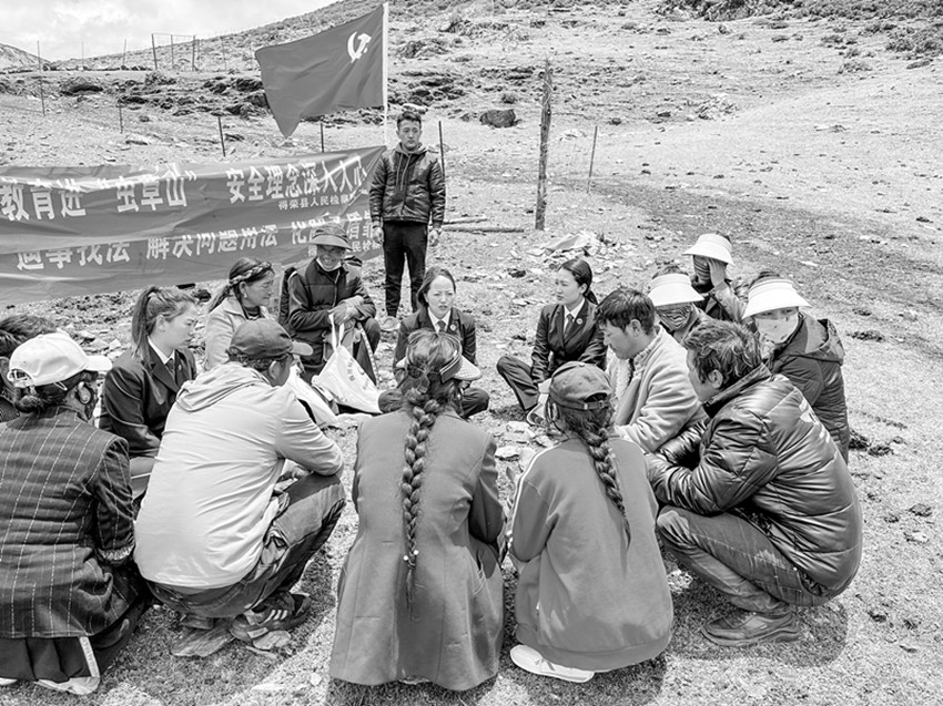 圖為檢察院工作人員在蟲草山上開展法治宣講。