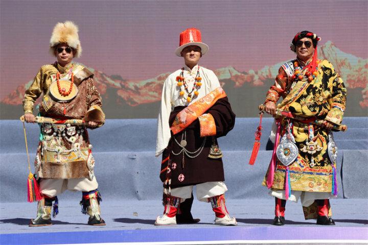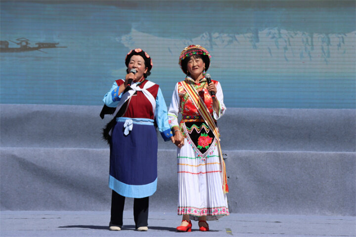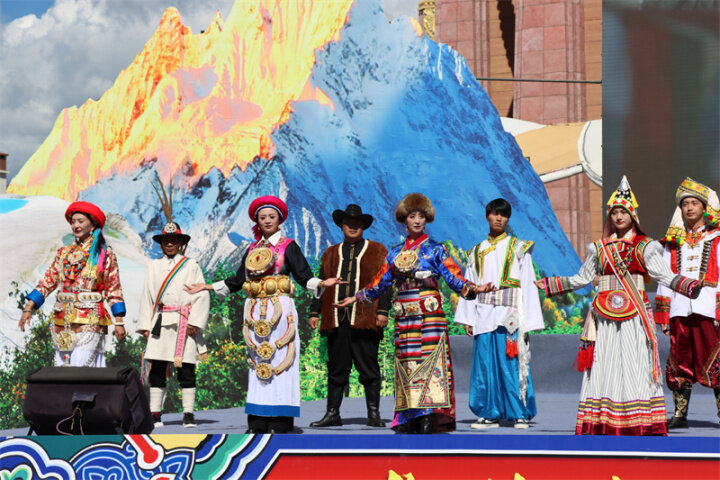 來自迪慶州文化館、俏夕陽藝術團、雍恰碩藝術團等的演員們帶來了《阿尺目刮》《犁牛調》《洛吉葫蘆笙打跳》等歌舞表演和走秀,為現場群眾帶來了一場文化盛宴,充分展現了迪慶州各族兒女共同團結進步、共同繁榮發展的時代風貌。