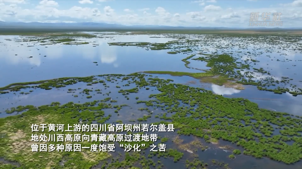 位于黃河上游的四川省阿壩州若爾蓋縣地處川西高原向青藏高原過渡地帶,曾因多種原因一度飽受“沙化”之苦。2017年至今,若爾蓋縣采取“高山柳沙障+植灌+種草+施肥+圍欄+管護”等綜合治理措施,治理各類沙化土地共計45.33萬畝,“編織”出一幅黃河邊沙化治理新畫卷。
