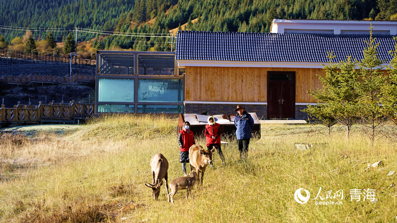 祁連山國家公園野生動物救護繁育中心,工作人員正在觀察動物的進食情況。人民網記者 楊啟紅 攝