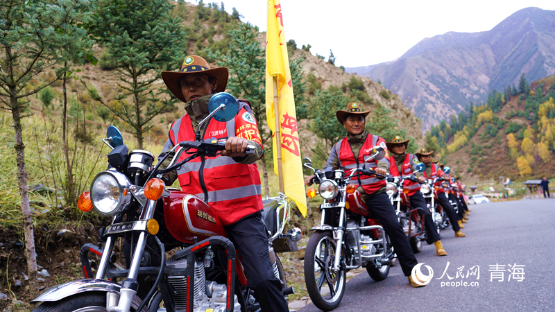管護員們騎摩托車準備巡護。人民網記者 楊啟紅 攝
