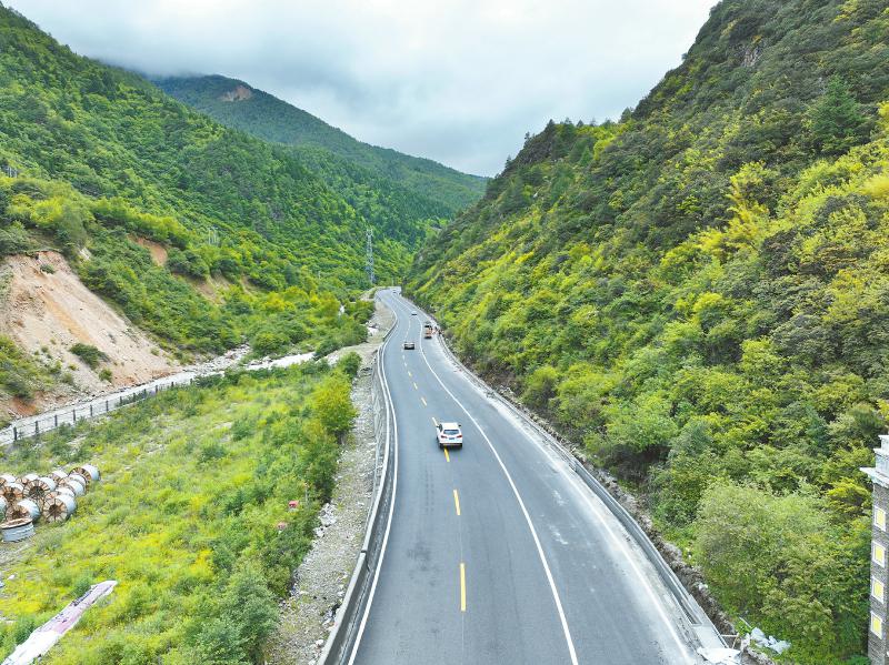 這樣的巧思,還體現在新都橋至雅江段的改造提升上。為了提升通行能力,本輪改造在有條件的地方增設了輔助通道。新都橋至雅江段的輔助通道是通過對既有公路進行改擴建實現,但進入雅江縣城前的路段沿河而行,原路狹窄,如果加寬會侵擾河道,影響行洪安全。經過多個方案的對比優化,設計人員提升了這段路的設計等級,以橋梁和隧道為主要方式布線,并在輔助通道與國道318間增加了諸多橫向聯系,讓兩條路可以互相轉換。由此,形成了進入雅江縣的“雙通道”,到縣城的車輛通行國道318,不到縣城的車輛通過輔助通道快速過境。