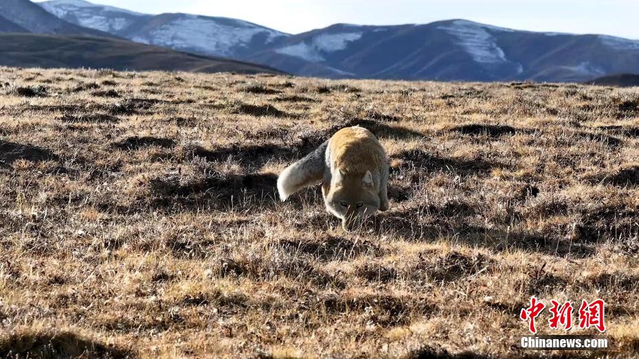 青海祁連:藏狐結伴覓食 “方臉”出鏡又萌又兇