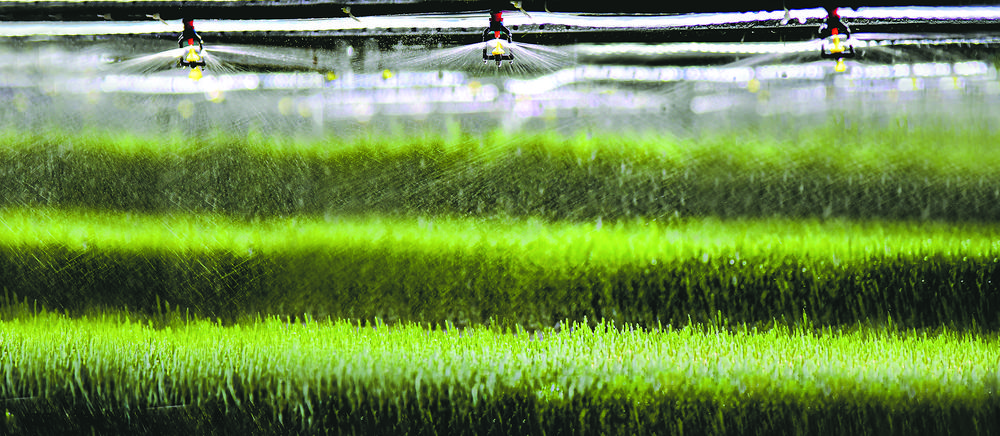 為種植架上的牧草進行噴灌