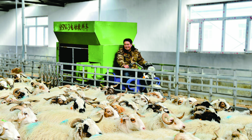 牧民給羊兒投喂“營養餐”