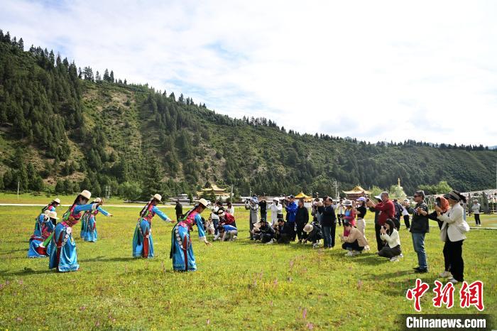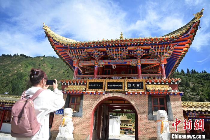 圖為華媒代表拍攝卓尼縣旗布寺。中新社記者 九美旦增 攝