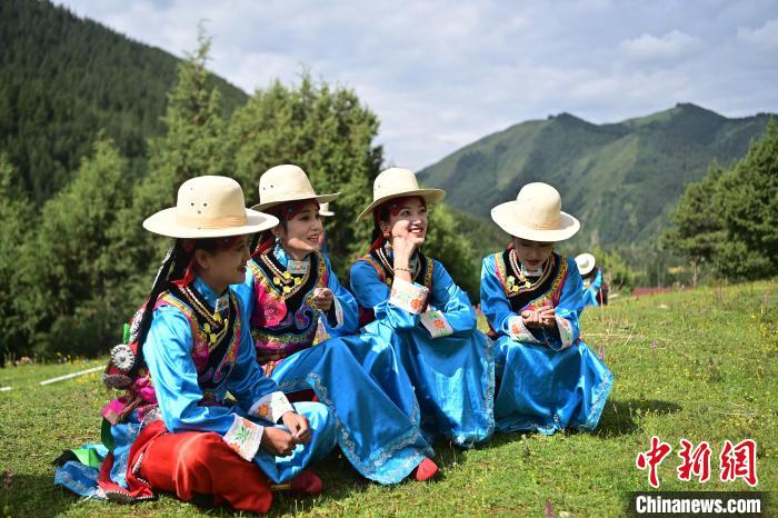 圖為在卓尼大峪溝景區表演的巴郎鼓舞。中新社記者 九美旦增 攝