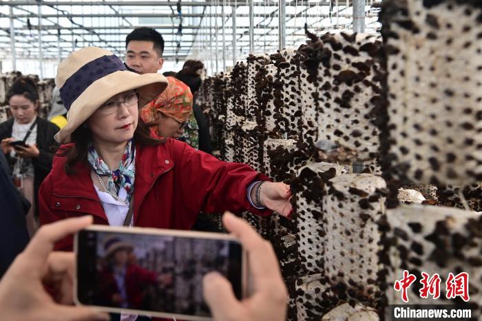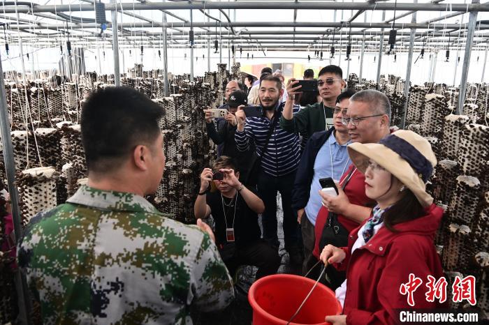 圖為華媒代表在卓尼縣木耳鎮采訪拍攝當地特色產業黑木耳。中新社記者 九美旦增 攝
