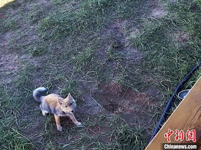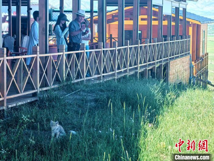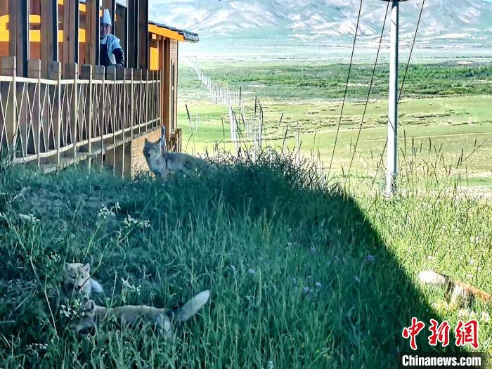 圖為青海湖金沙灣景區廚師看著藏狐一家。中新社記者 李雋 攝