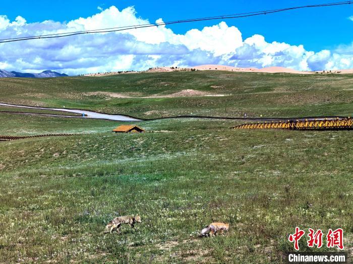 圖為小藏狐在青海湖金沙灣草地上玩耍。中新社記者 李雋 攝
