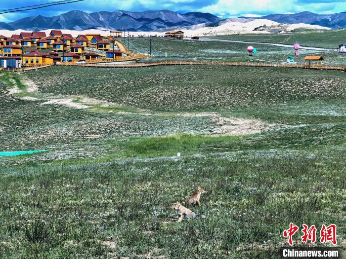 7月3日,記者在青海湖北岸的青海省海北藏族自治州海晏縣金沙灣,近距離拍攝到藏狐“一家五口”在景區木棧道下出入。景區工作人員介紹,4只小藏狐在媽媽的帶領下住在棧道下面,不時在棧道旁的草地上嬉戲打鬧,景區游客可近距離拍攝到這可愛畫面。據記者觀察,藏狐一家看到人類后并不懼怕,還與人類對視“互動”,最近距離不足兩米。