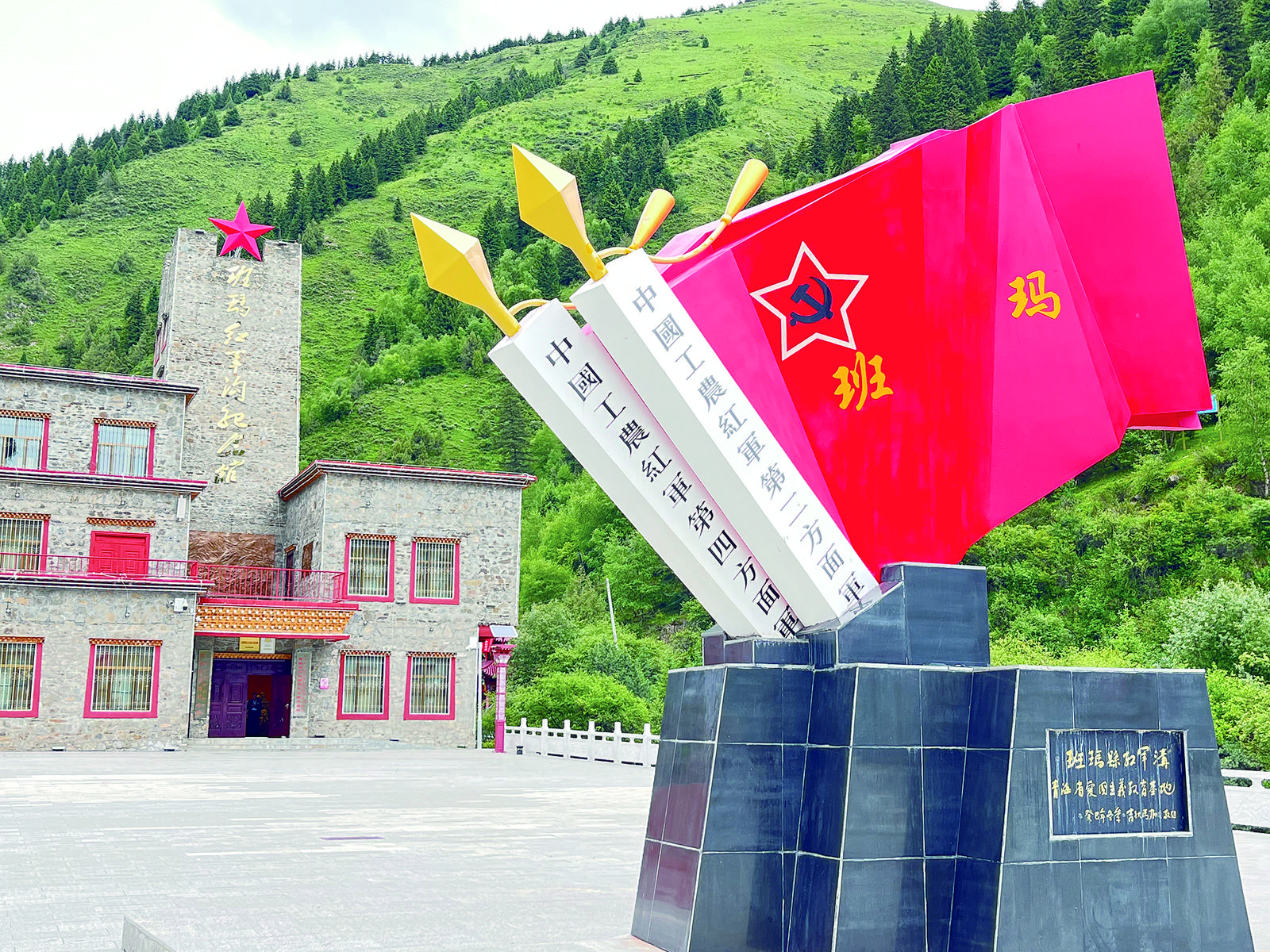 班瑪紅軍溝景區內的紅旗雕塑。李永波 攝