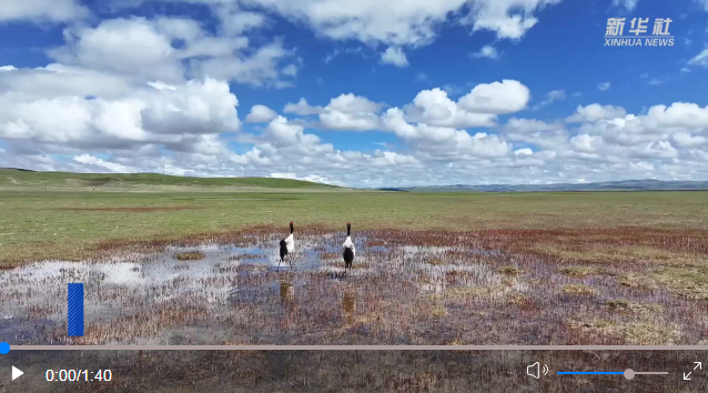近日,攝影師在三江源國家公園的一處濕地拍攝到黑頸鶴活動的影像,黑頸鶴常棲息在河灘草地沼澤,是唯一終生生活在高原地區的鶴種,其中青藏高原是黑頸鶴的主要繁殖地。隨著濕地生態的日益改善,僅青海省監測到的黑頸鶴分布點位已經超過100個。