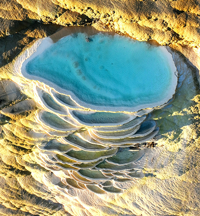 如果說紅河哈尼梯田,是人類的精雕細琢;那么地處香格里拉的白水臺則是大自然的鬼斧神工。