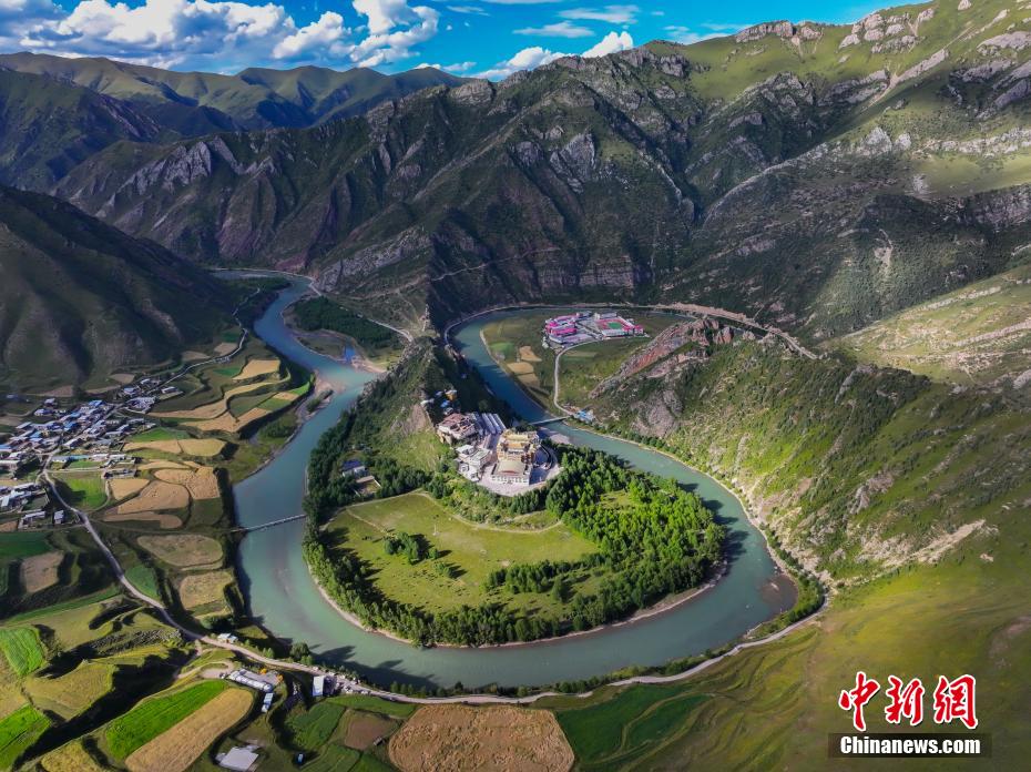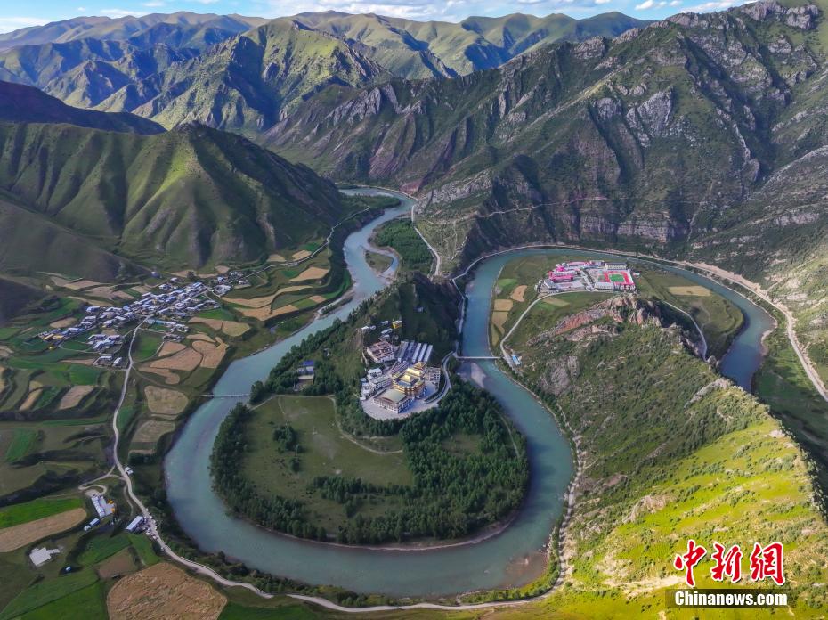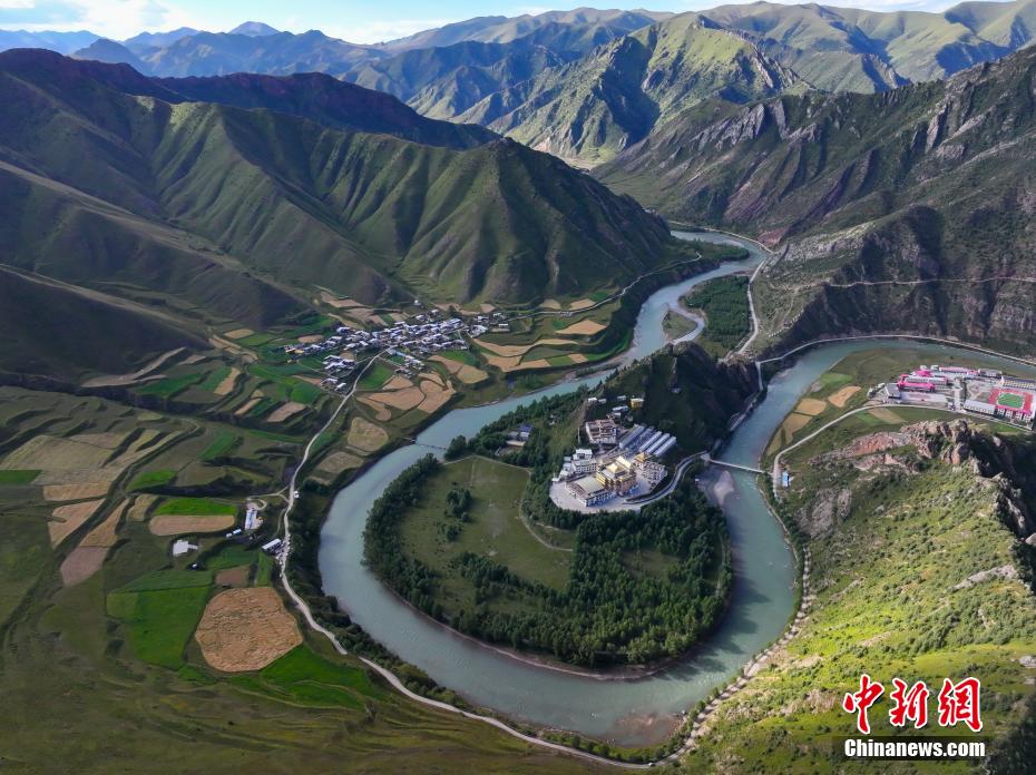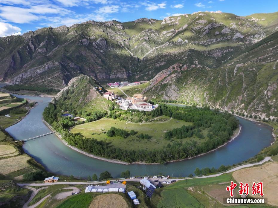 青海省玉樹藏族自治州囊謙縣地處青海省最南端、三江源腹地,瀾滄江上游五條支流貫穿全境,在該縣毛莊鄉,瀾滄江東源孜曲蜿蜒而下,古老的尕丁寺被孜曲包圍,成為當地獨特風景。