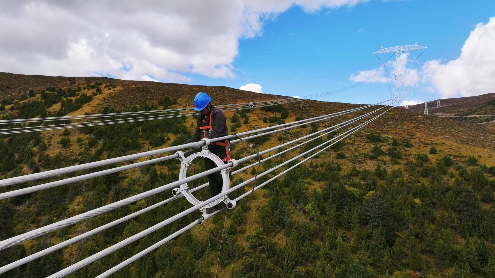 金上特高壓工程完成海拔最高點架線施工。