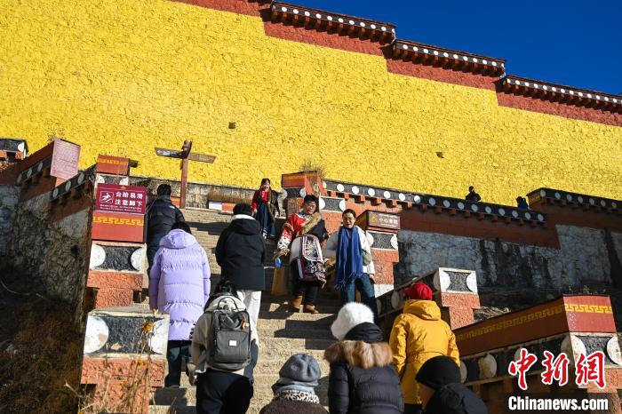1月7日,云南省迪慶藏族自治州香格里拉市旅游熱度不減,眾多游客選擇錯峰出行,來到噶丹松贊林寺感受“小布達拉宮”魅力。