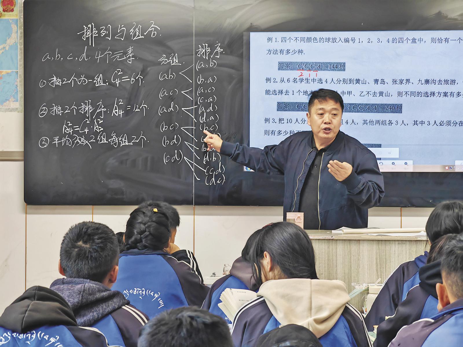 2023年5月,孫鳳軍主動請纓踏上海拔4000米的玉樹高原,展開自己的援青支教生涯。初到玉樹州第四民族高級中學,孫鳳軍直觀感受到,北京援建的校舍靜美安然、教育硬件資源與其他省市差距不大,但軟件資源相對薄弱單一,學生手中只有“人教版”的數(shù)學課本,對高中數(shù)學知識的掌握程度停留在基礎層面,題型見得少、解題思維僵化,高考平均數(shù)學成績長年徘徊在及格線以下。