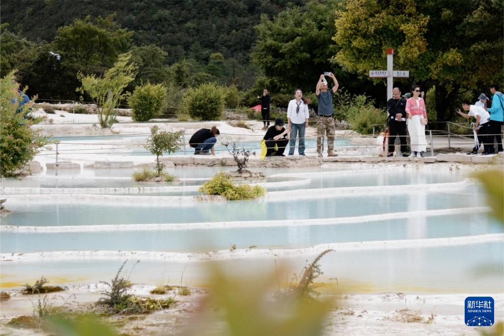 6月26日,游客在白水臺游玩。新華社記者 浦超 攝