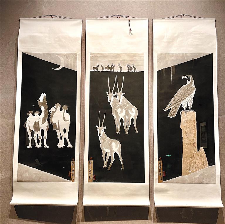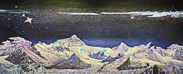 韓書力作品《喜馬拉雅八聯通景(三幅)》。記者 丹增平措 攝
