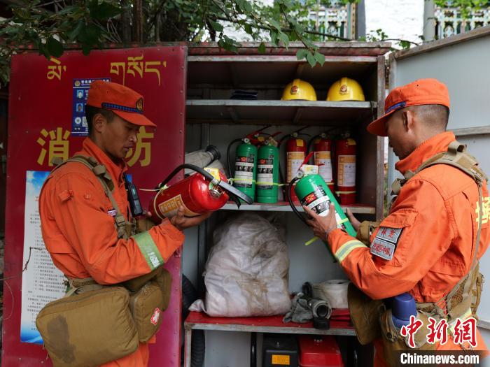 圖為檢查景區防火器材。巴宜區中隊供圖