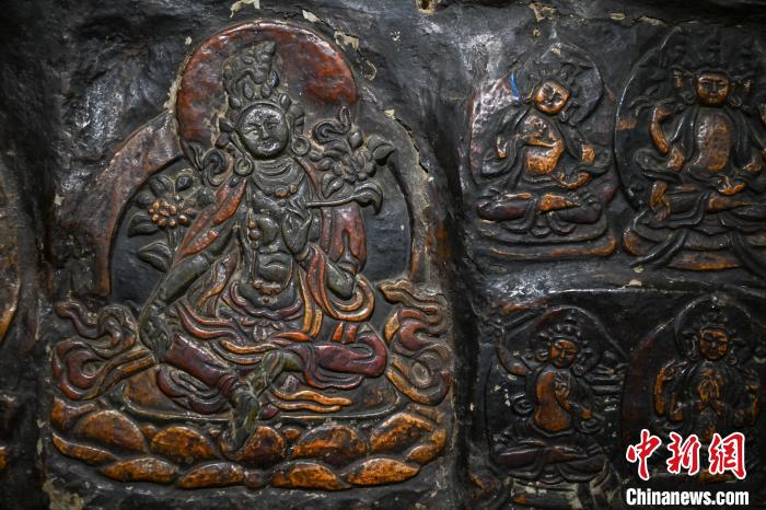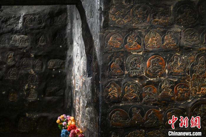 4月27日,記者探訪了當雄縣貢堂鄉沖嘎爾村康馬寺的瑪尼拉康。瑪尼拉康是該寺除修行洞之外的早期宗教活動場所,也是寺院里最古老的建筑。這里保存著令人驚嘆的石刻造像墻,這些石刻距今已有三百年歷史。瑪尼拉康外觀普通,但其室內六面墻上整齊地貼滿了浮雕石刻板,共計1213塊(僅一塊缺失)。石刻內容豐富,涵蓋了藏傳佛教各宗各派的本尊、祖師、佛母菩薩等,造型多姿多樣,線條清晰流暢。這處石刻造像墻對于研究西藏傳統雕刻、藏傳佛教以及歷史具有重大意義。中新社記者 貢嘎來松 攝