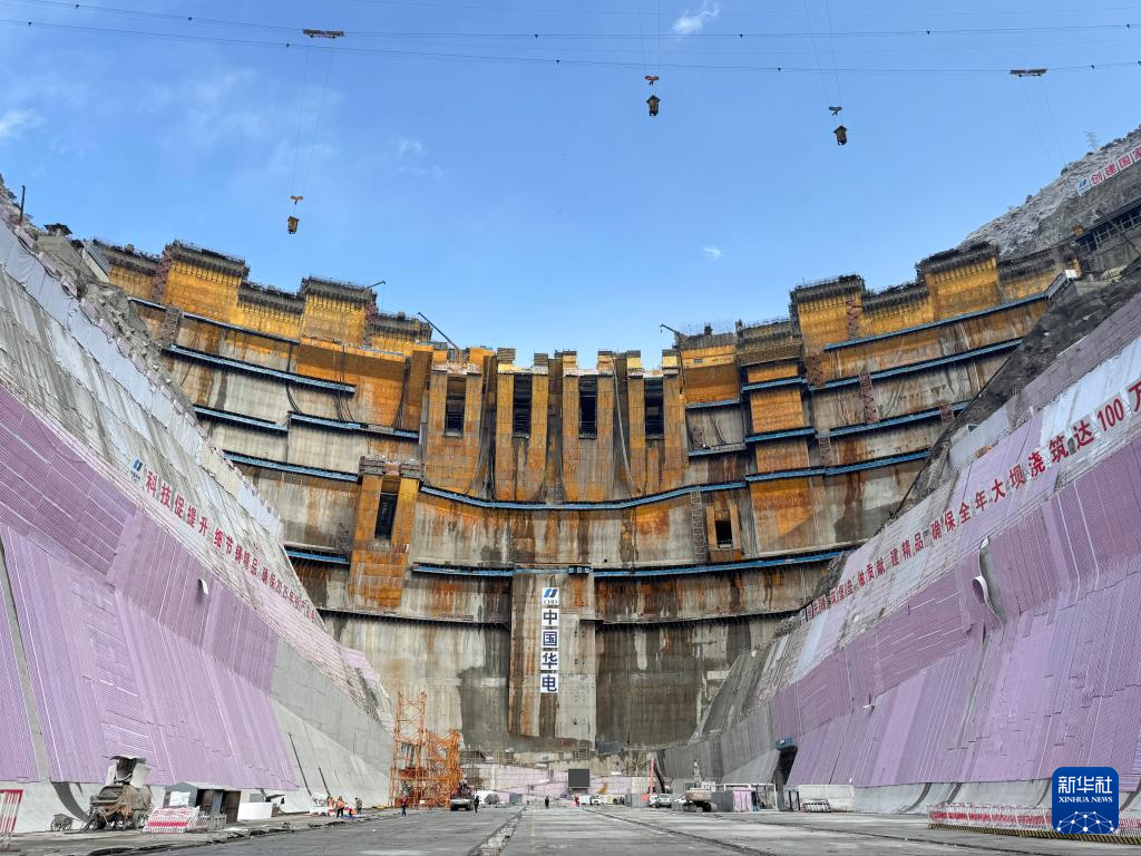 正在建設中的葉巴灘水電站混凝土雙曲拱壩。(受訪單位供圖)