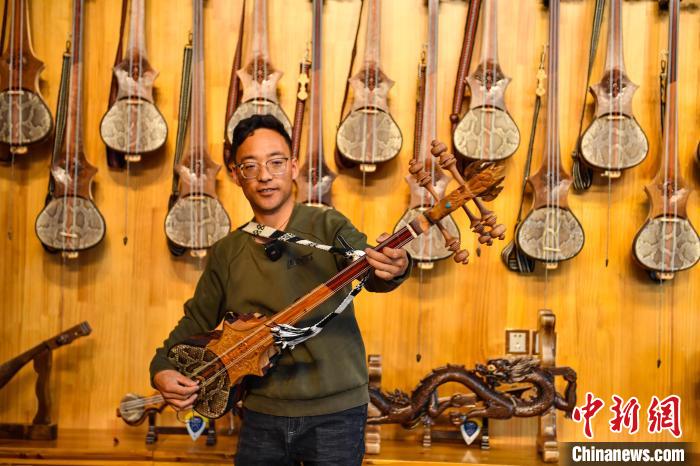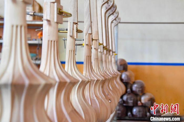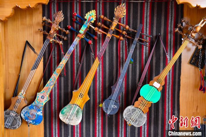 6月14日,記者走進西藏自治區日喀則市拉孜縣熱薩鄉,探訪中國國家級非物質文化遺產“扎念琴制作技藝”的具體制作過程。扎念琴,又名六弦琴,是西藏傳統歌舞“堆諧”中最常用的彈撥樂器。扎念,藏語意為“悅耳動聽之聲”。在西藏,扎念琴深受廣大群眾喜愛。2014年,“扎念琴制作技藝”入選第四批中國國家級非物質文化遺產代表性項目名錄。據了解,扎念琴制作共有5道基本程序:第一步,將整根木材掏空,做成共鳴箱;第二步,制作中間空心的琴桿,裝上名為“卡杺”的面板;第三步,雕刻“馬頭”或“龍頭”形狀的琴頭,安裝在琴桿頂部;第四步,制作附在琴頭、呈半圓形、向后彎曲且中間開有弦槽的扎念弦軸。最后一步,挑選羊腸、牛筋、絲線等不同材料來制作琴弦。扎念琴制作技藝的特別之處在于,為了琴身的美觀,初制后還要通過雕刻馬頭、龍頭、火焰等形狀作為裝飾,讓扎念琴更具特色。圖為制作完成的扎念琴。貢確 攝
