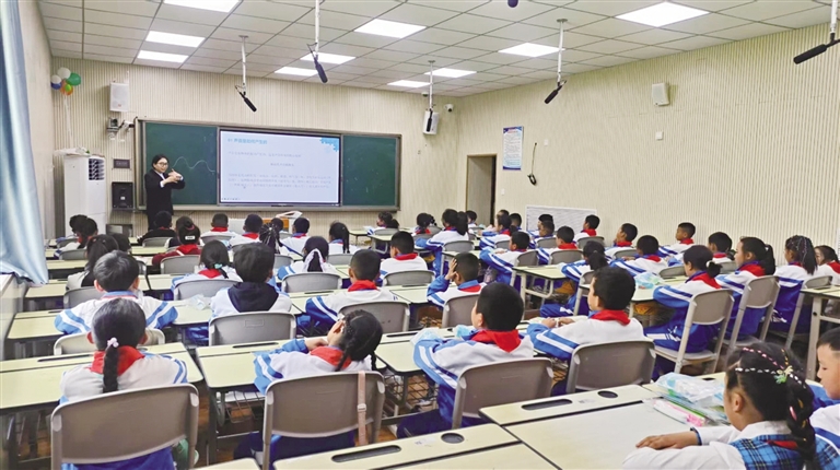 本次活動以單課時科普課程為載體,聚焦“聲音是如何產生的”“聲音為什么會不同”“聲音是如何傳播的”“我們是如何聽到聲音的”四大核心問題,針對小學三至五年級學生不同的知識儲備,設計出“排簫音調實驗”“鼓膜振動模型”“八弦琴音色對比”“簡易擴音器制作”“真空罩聲音衰減”5個生動有趣的科學實驗,分層實施教學,激發了學生們探索科學的濃厚興趣。