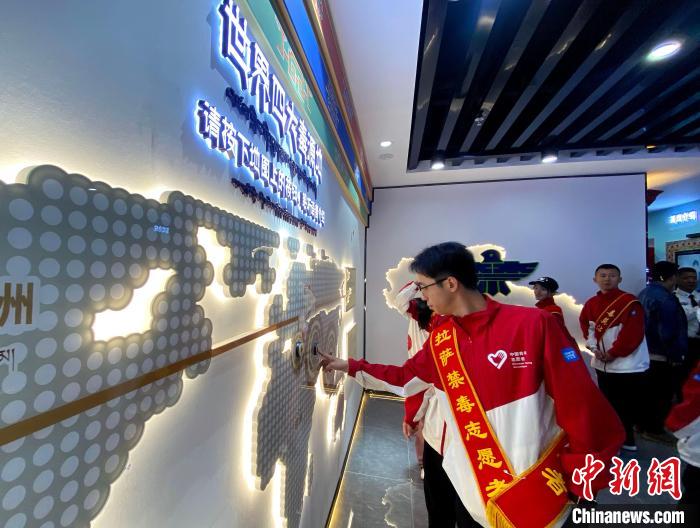 圖為6月26日,禁毒志愿者在西藏自治區禁毒教育基地參與互動體驗。李林 攝