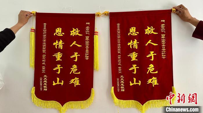 圖為寺內僧人因救人收到的錦旗。 謝牧 攝
