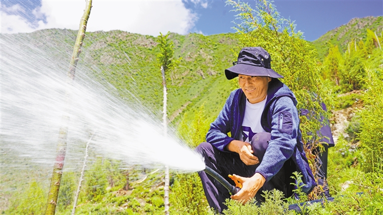 工程帶來的不僅是生態效益,更有可觀社會效益。項目實施以來,累計吸納3541人次墨竹籍群眾參與建設。從挖穴栽苗到日常養護,當地群眾成為生態建設主力軍。達瓦次仁感慨:“在家門口就業,每日收入200多元,還能參與家鄉綠化,內心踏實又滿足?!?/p>