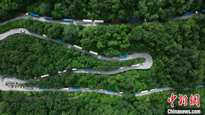 圖為7月15日,入境貨車正在駛入樟木口岸國門。蔣美靈 攝