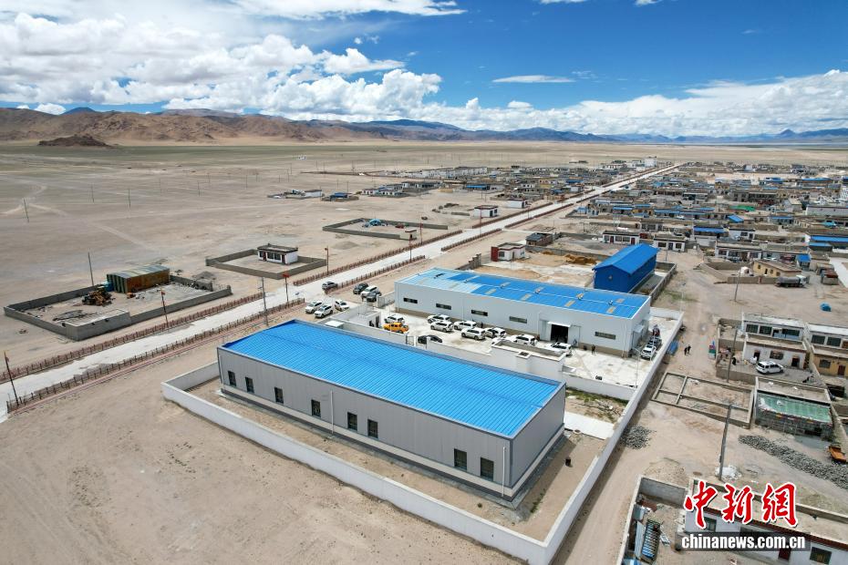 7月20日,在西藏阿里地區革吉縣鹽湖鄉拍攝的粗鹽巴加工廠。一千多年前,阿里地區有50多家駐扎的鹽幫,將自然鹽用羊馱牛背邊放牧邊運輸的方式,運送到普蘭、日喀則、印度、尼泊爾等地,并用以物易物的方式換回青稞、磚茶、布料等日常生活所需的物品,從而孕育了遠負盛名的“鹽羊古道”傳奇。近年來,當地開辦粗鹽巴加工廠、打造“鹽羊古道”旅游品牌等方式,使千年“鹽羊古道”煥發新生機。(無人機照片)中新社記者 張祥毅 攝