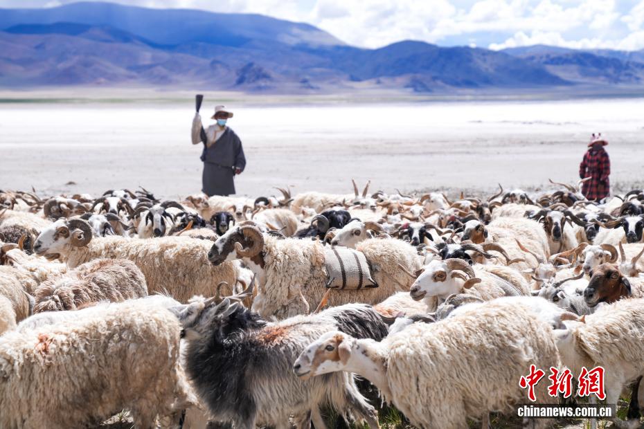 7月20日,在西藏阿里地區革吉縣鹽湖鄉,牧民將已馱負鹽袋的羊放歸羊群。一千多年前,阿里地區有50多家駐扎的鹽幫,將自然鹽用羊馱牛背邊放牧邊運輸的方式,運送到普蘭、日喀則、印度、尼泊爾等地,并用以物易物的方式換回青稞、磚茶、布料等日常生活所需的物品,從而孕育了遠負盛名的“鹽羊古道”傳奇。近年來,當地開辦粗鹽巴加工廠、打造“鹽羊古道”旅游品牌等方式,使千年“鹽羊古道”煥發新生機。中新社記者 張祥毅 攝