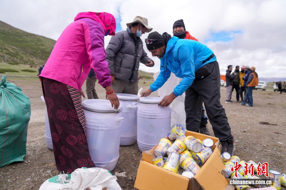 7月21日,在岡仁波齊山腳下,徒步旅行者做出發前的物資準備工作。岡仁波齊位于西藏阿里地區普蘭縣境內,是岡底斯山的主峰,也是藏傳佛教的神山之一,每年吸引眾多信徒前往轉山,并衍生出徒步旅行的經典路線。每年來自國內外的徒步旅行者為當地創造就業機會的同時,也推動了文旅產業的發展。中新社記者 張祥毅 攝