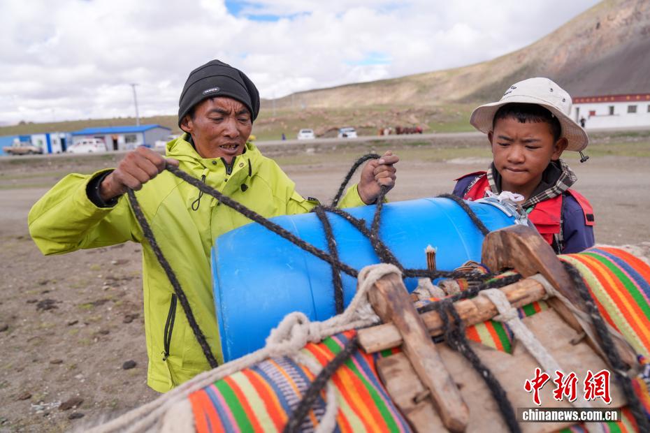 7月21日,在岡仁波齊山腳下,牦牛運輸隊隊員往牦牛背上綁縛物資,準備將其運輸至轉山徒步路線的補給站。岡仁波齊位于西藏阿里地區普蘭縣境內,是岡底斯山的主峰,也是藏傳佛教的神山之一,每年吸引眾多信徒前往轉山,并衍生出徒步旅行的經典路線。每年來自國內外的徒步旅行者為當地創造就業機會的同時,也推動了文旅產業的發展。中新社記者 張祥毅 攝